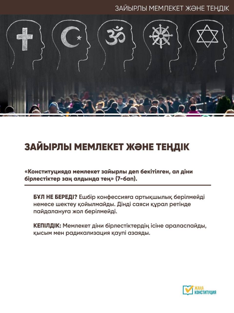 Бұл зайырлы мемлекет қағидаттарына және азаматтардың діни наным-сенімдеріне қарамастан теңдігіне негізделген айқын ұстанымды қалыптастырады.