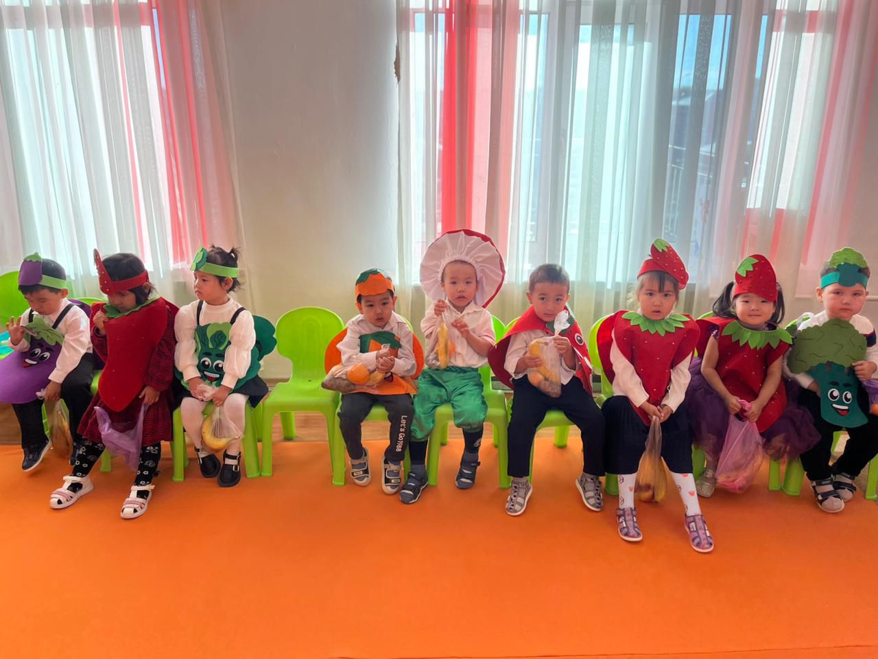 Алдымен топ жетекшісі Гүлнар Қоқанова ортаға түрлі жеміс-жидектер мен көкөністердің киімін киген тәрбиеленушілерді шақырды. Олар “Күз” әнін хормен орындап, көкөністер мен жемістер туралы тақпақ айтты. Бұдан соң күздің берекелі, мерекелі кезін насихаттайтын жәрмеңкеге кезек берілді.