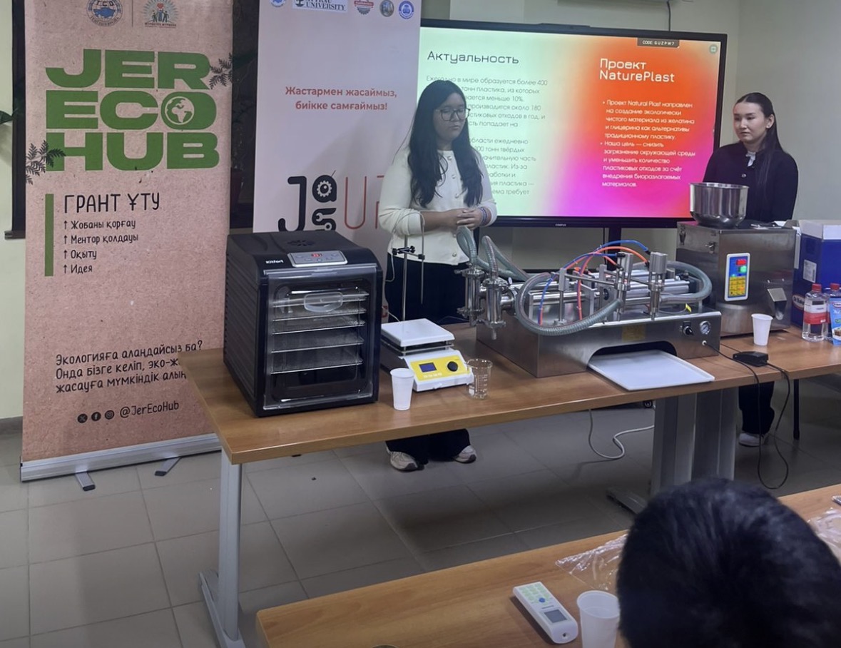 JerEcoHub хакатонына қатысу барысында Дария мен Сабина өз идеяларын таныстырып, 1 000 000 теңге көлеміндегі грантты жеңіп алды. Бұл қаражат биопластиктің шағын өндірісін іске қосуға бағытталмақ. Жас зерттеушілердің жоспары бойынша, олар кард-холдерлер, кәдесыйлар, мұқабалар және тұрмыста қолдануға ыңғайлы өзге де бұйымдарды шығарып, экологиялық таза шикізатты басқа шеберханаларға жеткізуді көздейді.