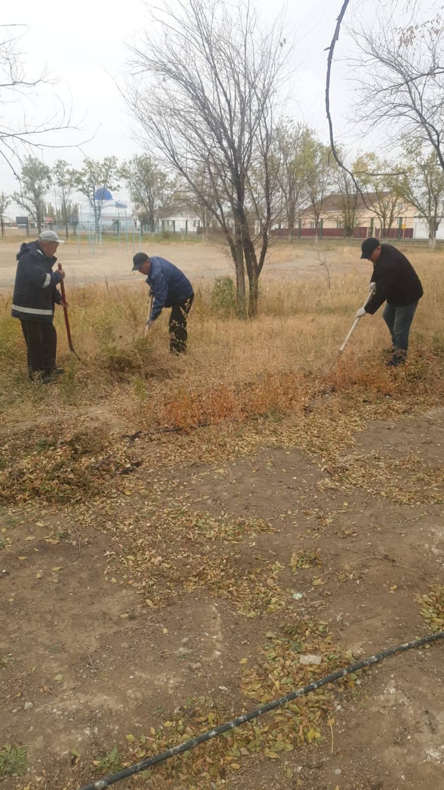 Ағаштардың түбі әктеліп, қоршаулар мен аумақтар ретке келтірілді.