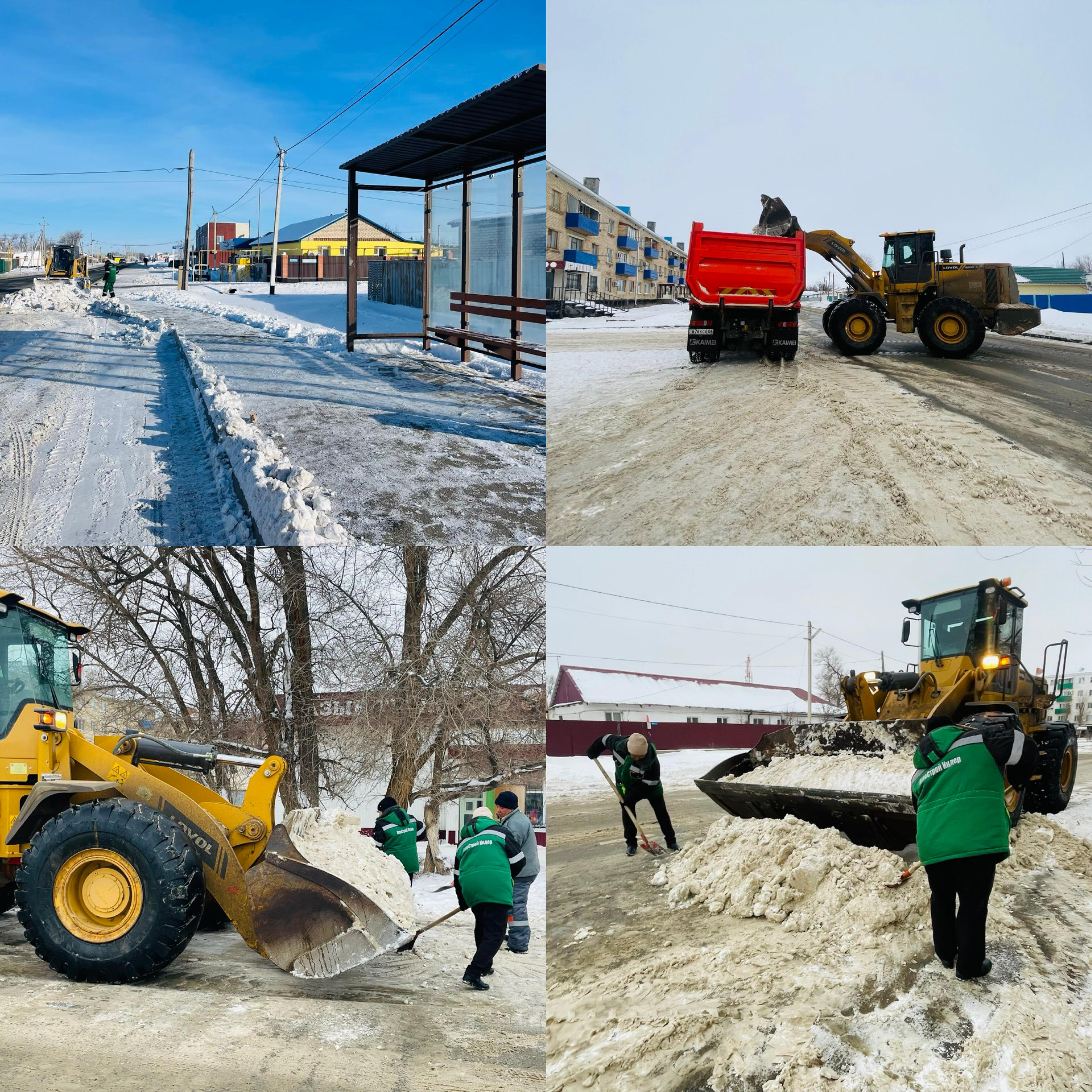 Таңертеңнен бастап тиегіштер мен жүк көліктері жиналған қарды шығарып, жолдарды ашып, көлік қозғалысын ретке келтірді. Сонымен қатар жұмысшылар аялдамалар маңын қолмен күреп, тұрғындардың емін-еркін жүруіне жағдай жасады.