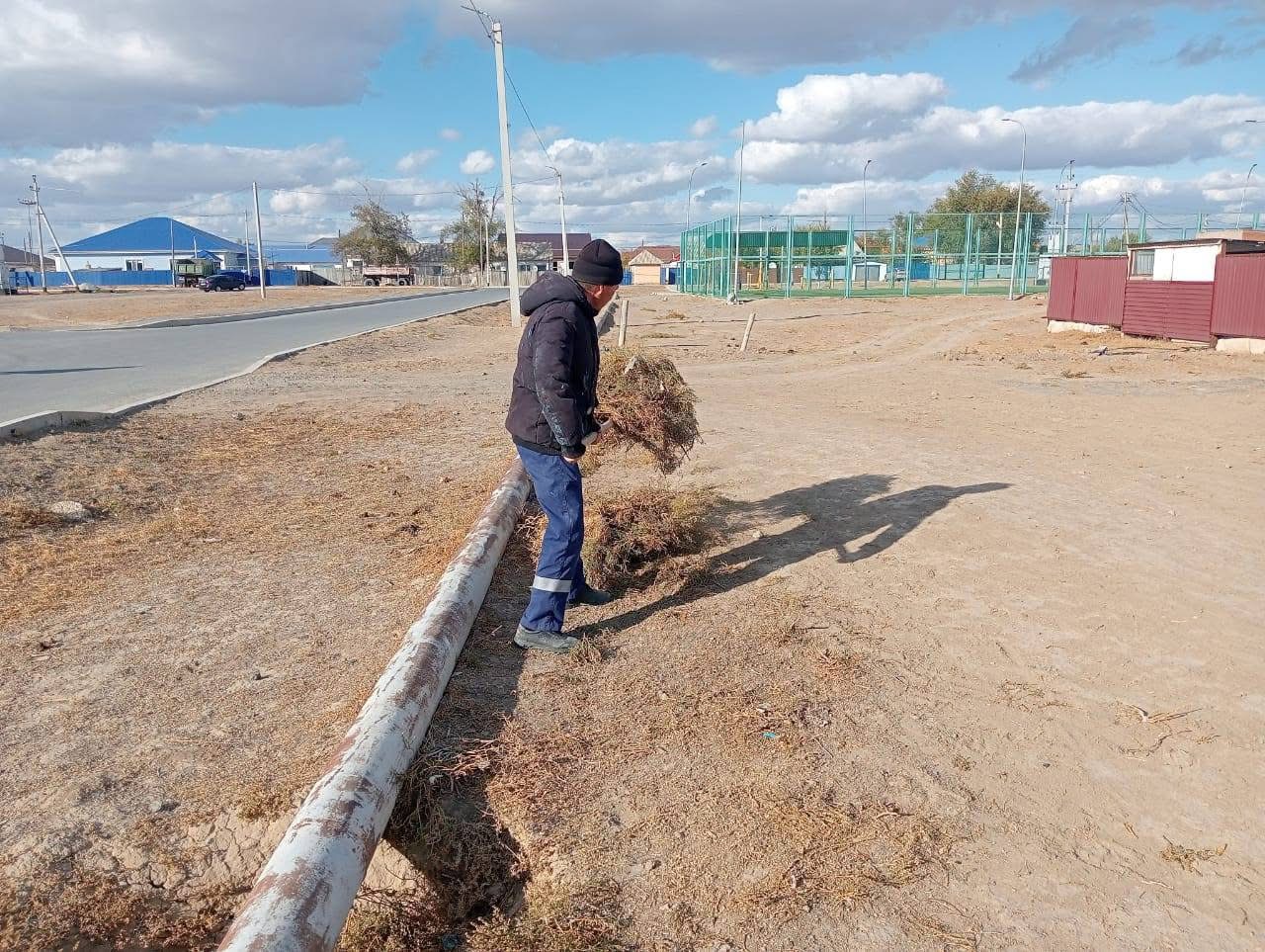 Көшелер бойындағы қоқыстар жиналып, арам шөптер шабылды;