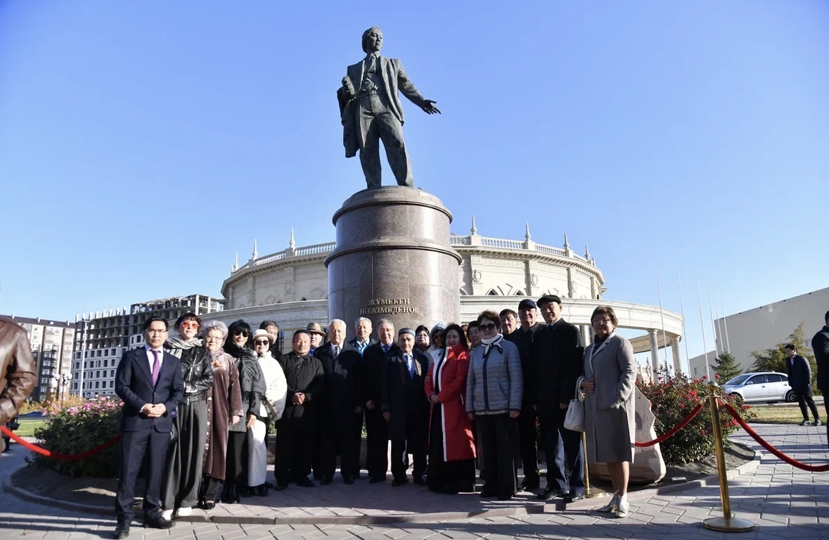 Атырауда Жұмекен Нәжімеденовтің ескерткішіне гүл шоқтары қойылды