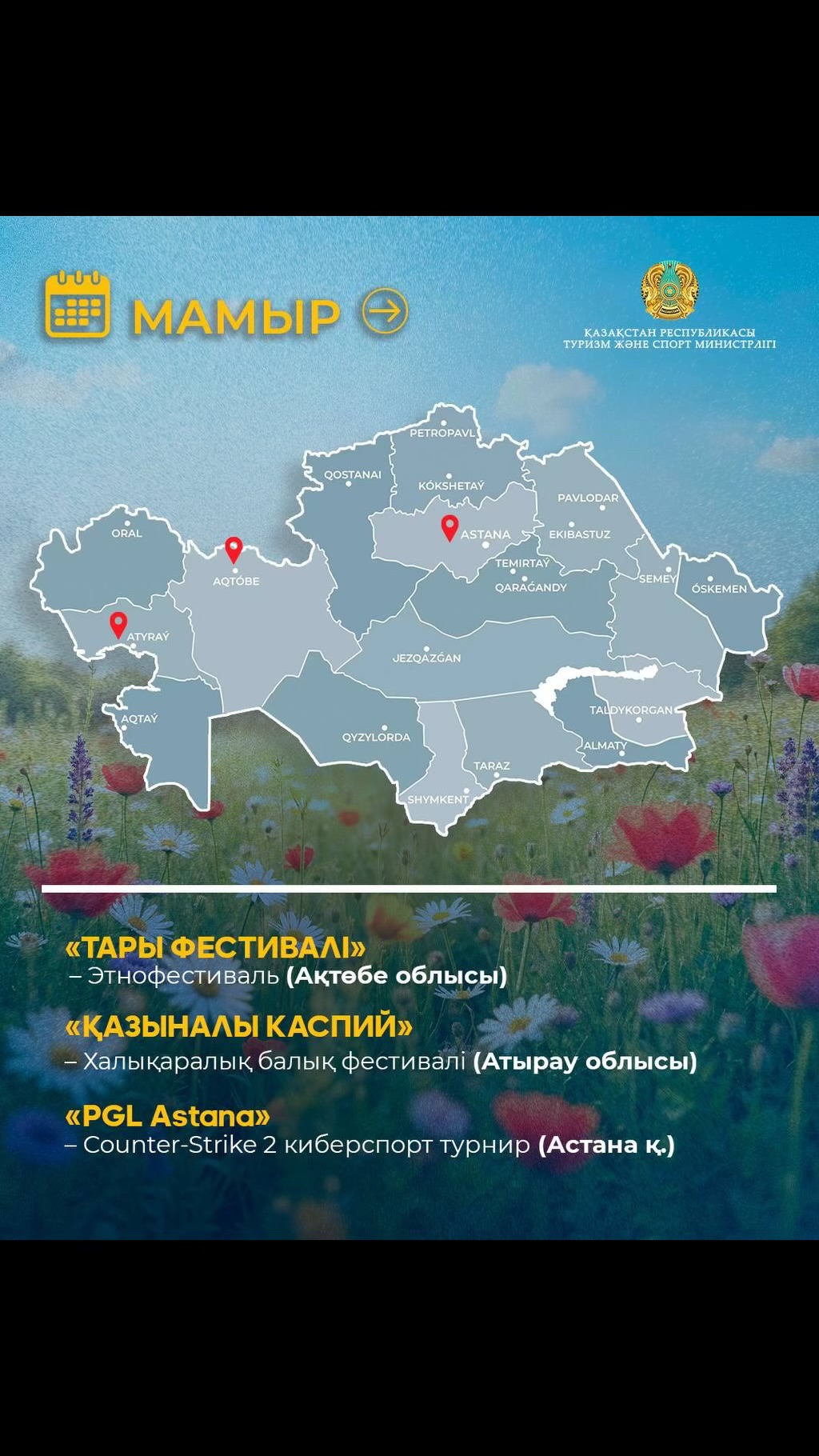 Туризм және спорт министрлігі 2026 жылға арналған мәдени-туристік оқиғалар күнтізбесін дайындады. Құжатта еліміздің 20 өңірінде өтетін 55 ірі іс-шара қамтылған.