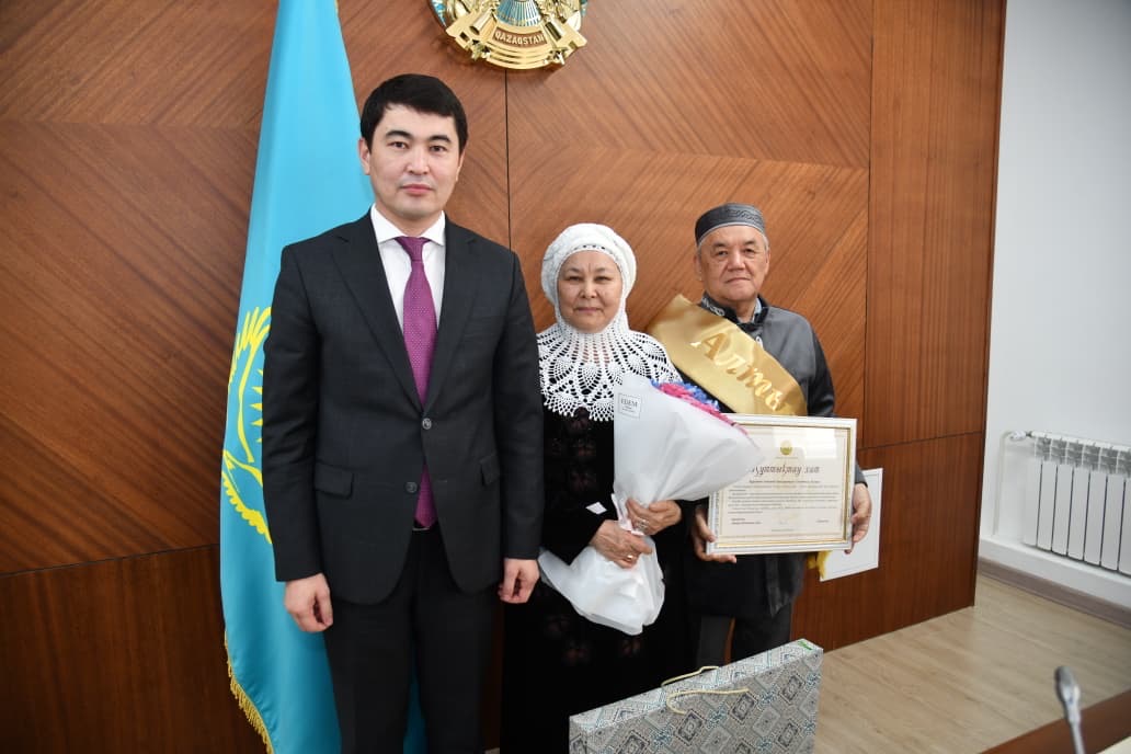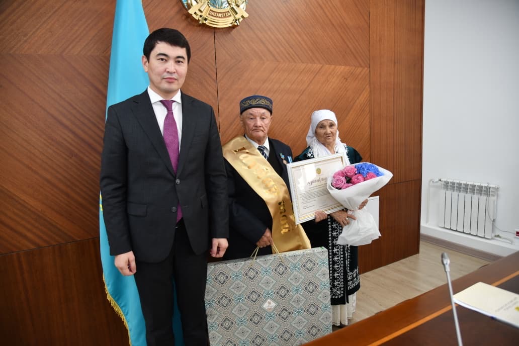 Дарын Шамұратов ұзақ жылдар бойы бір шаңырақ астында татулық пен сыйластықтың үлгісін көрсеткен отбасыларды мерейтойларымен құттықтап, аймақ  басшысы Серік Жамбылұлының атынан құттықтау хаттары мен естелік сыйлықтарын табыстады.