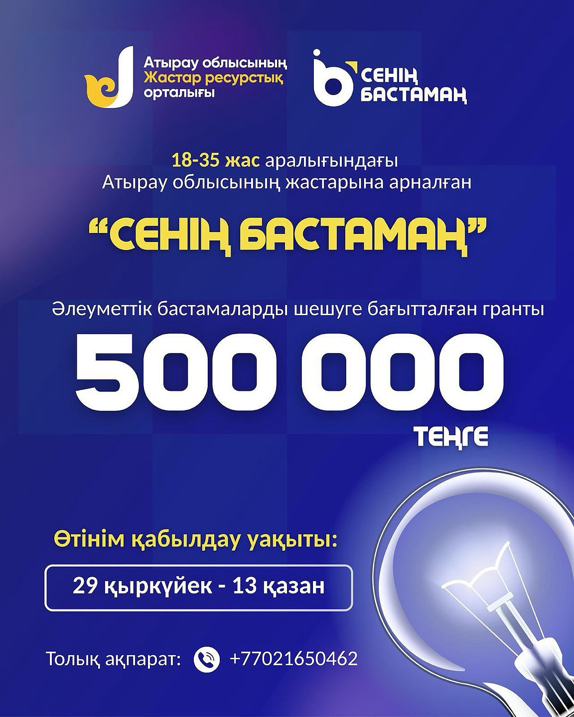 18-35 жас аралығындағы жастарға арналған әлеуметтік бастамаларды жүзеге асыруға бағытталған гранттық жобаға өтінім қалдырыңыз!