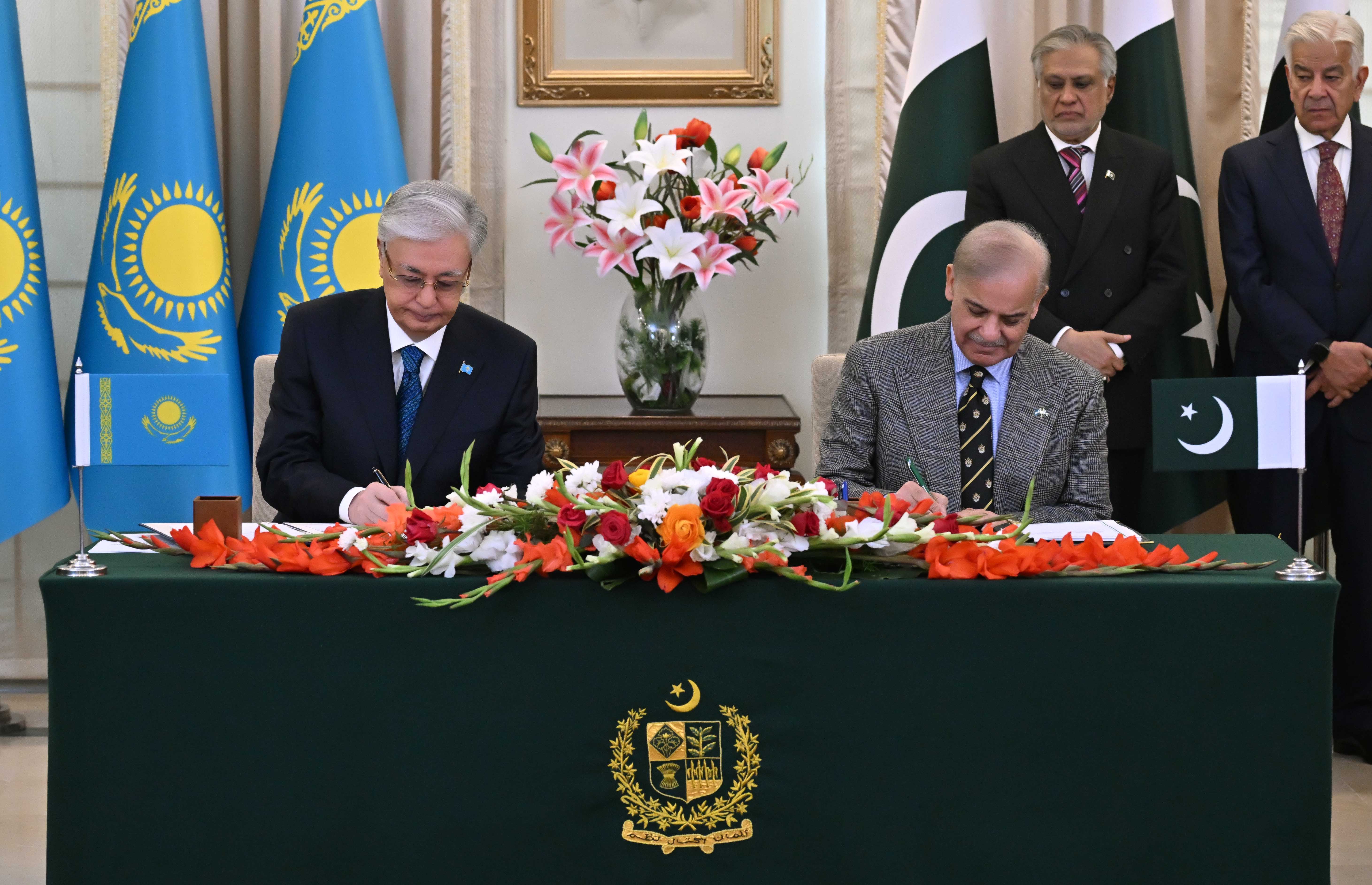 Қасым-Жомарт Тоқаев пен Шахбаз Шариф Қазақстан Республикасы мен Пәкістан Ислам Республикасы арасында стратегиялық серіктестік орнату туралы бірлескен декларацияға қол қойды