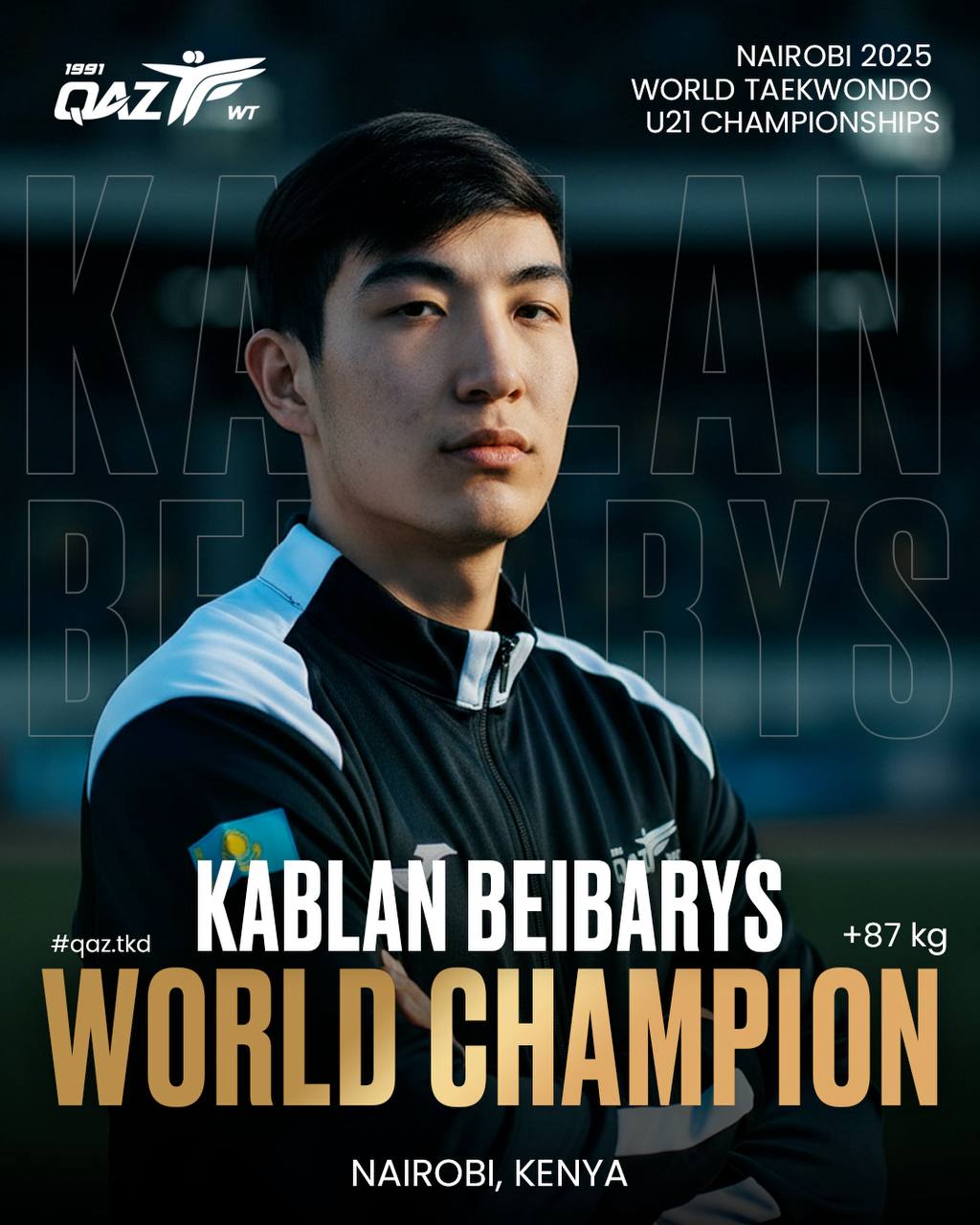 Кенияда өтіп жатқан 21 жасқа дейінгі спортшылар арасындағы таеквондо (WT) әлем чемпионатында қазақстандық спортшы Бейбарыс Каблан жеңіске жетті. Финалдық жекпе-жекте ол Оңтүстік Корея спортшысы Ян Чжунёнді ұтты.
