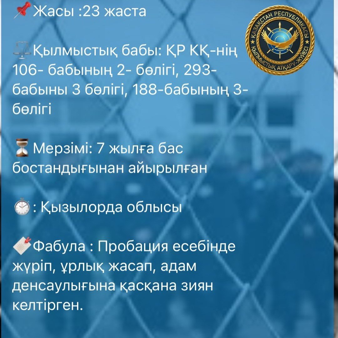 23 жастағы ер адам бұрын бұзақылық үшін сотталған еді, алайда бостандыққа шыққаннан кейін көп ұзамай тағы да қателік жасап, ұрлық жасаған.